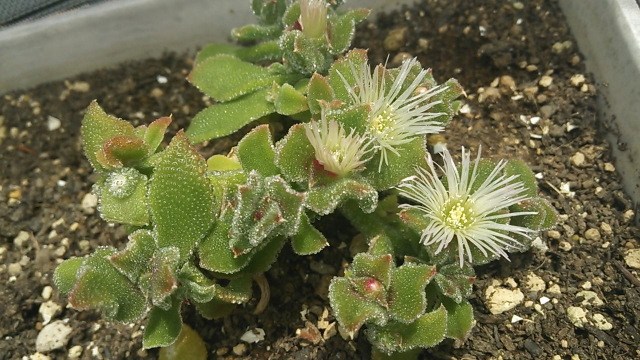 アイスプラントは根が弱いので、定植の際には、慎重に植え付けしてください。環境としては日当たりが良く、乾燥気味で、排水のいい条件が良く、雨に当てない方がいいので、栽培は庭の露地に定植するよりも、プランターなどでの室内栽培が向いているようです。